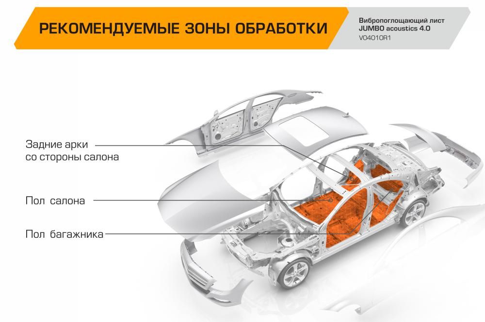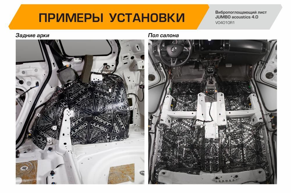 Снижает уровень шума в салоне автомобиляВибропоглощающие листы JUMBO acoustics – базовый слой в комплексной шумоизоляции авто, который поглощает шум от внешних источников и вибрации от панелей кузова и других частей авто (двигатель, трансмиссия, выхлопная система). Полимерный слой в составе листов защищает панели автомобиля от коррозии, алюминиевая фольга - упрочняет кузовной металл. Пластичный материал обладает нарастающей адгезией и высокой теплостойкостью, легко клеится на твердые поверхности. Шумоизоляция авто с помощью материалов JUMBO acoustics снижает шум и вибрации в салоне и создает тихую среду для комфортных поездок.