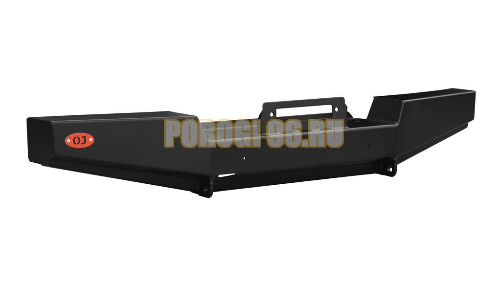Передний силовой бампер серии Туризм на УАЗ Хантер без дуг с горизонтальной площадкой лебёдки, буксирные проушины, проёмы под клюв реечного домкрата.