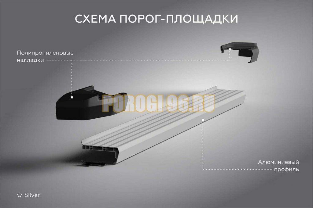 Сам порог выполнен из алюминиевого профиля- сплав алюминия и магния. За счет этого подножка способна выдерживать гарантированно нагрузку в 150 кг.