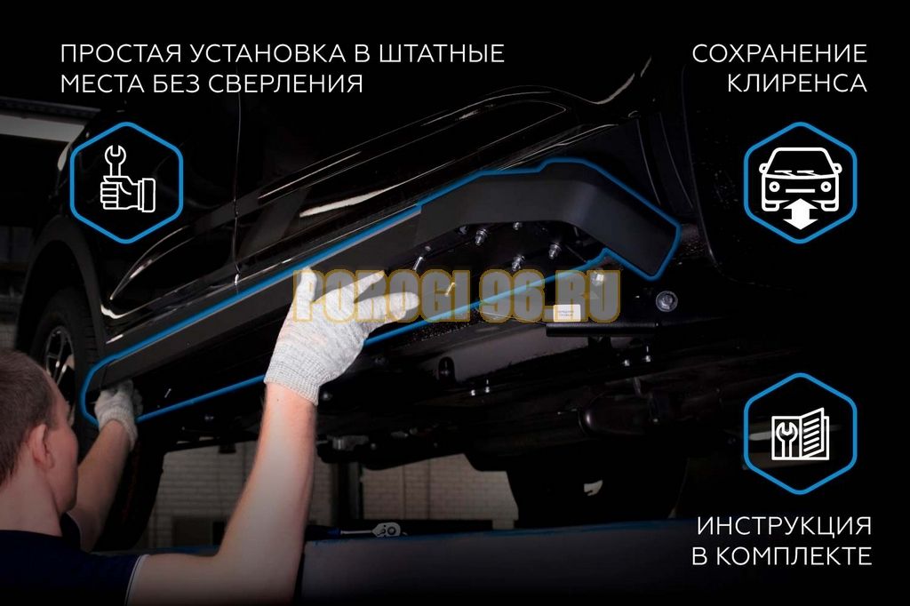 • Легкосъемные накладки по краям порогов, очень просто заменить в случае наезда на препятствие.