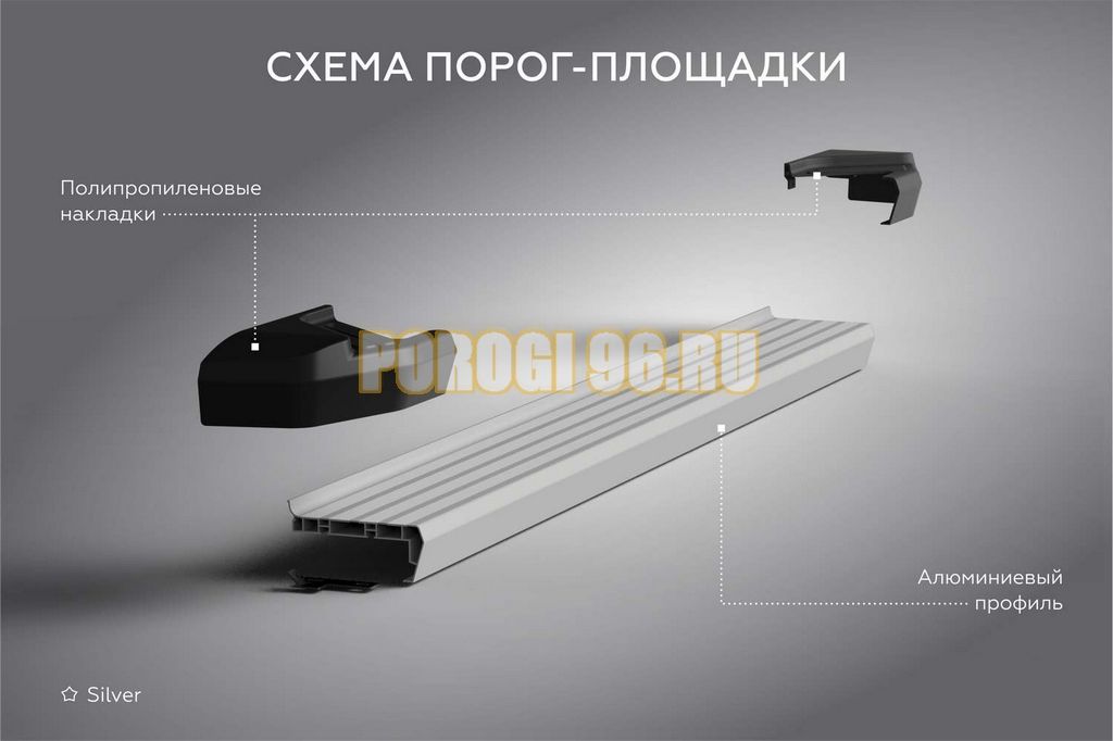 Сам порог выполнен из алюминиевого профиля- сплав алюминия и магния. За счет этого подножка способна выдерживать гарантированно нагрузку в 150 кг.