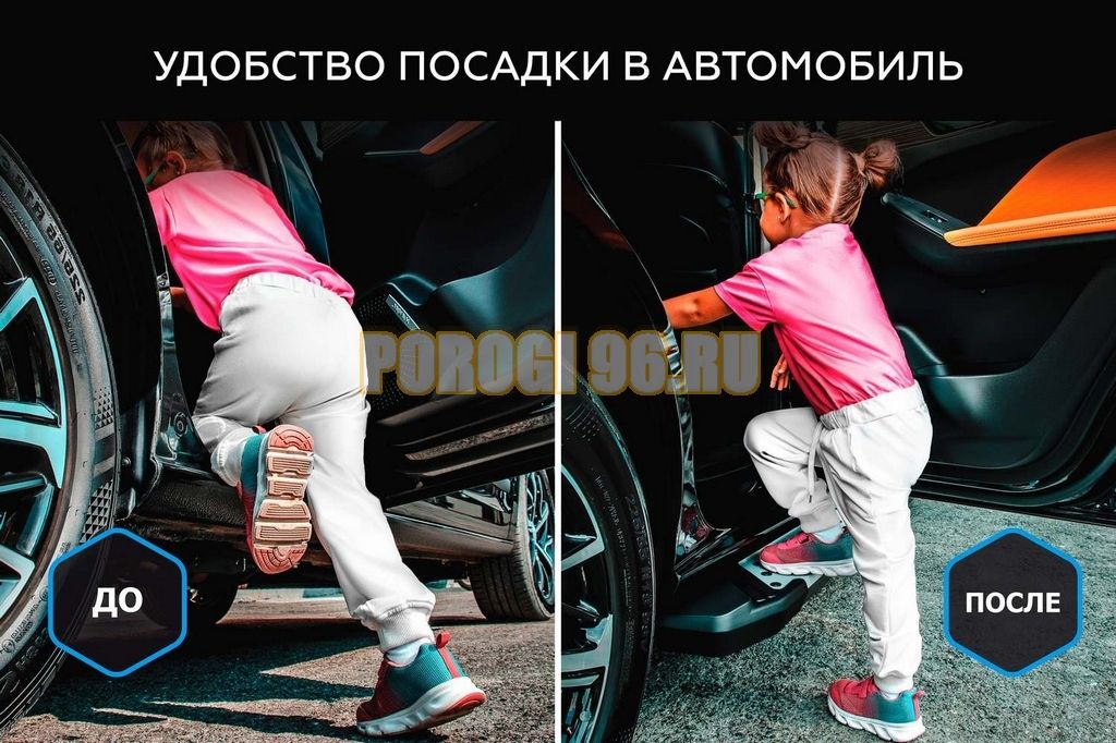 Очень часто автолюбители сталкиваются с проблемой, что при высадке пассажиров из рядом стоящего автомобиля, повреждается кузов Вашего авто. Подножка решит эту проблему и возьмет весь удар на себя!