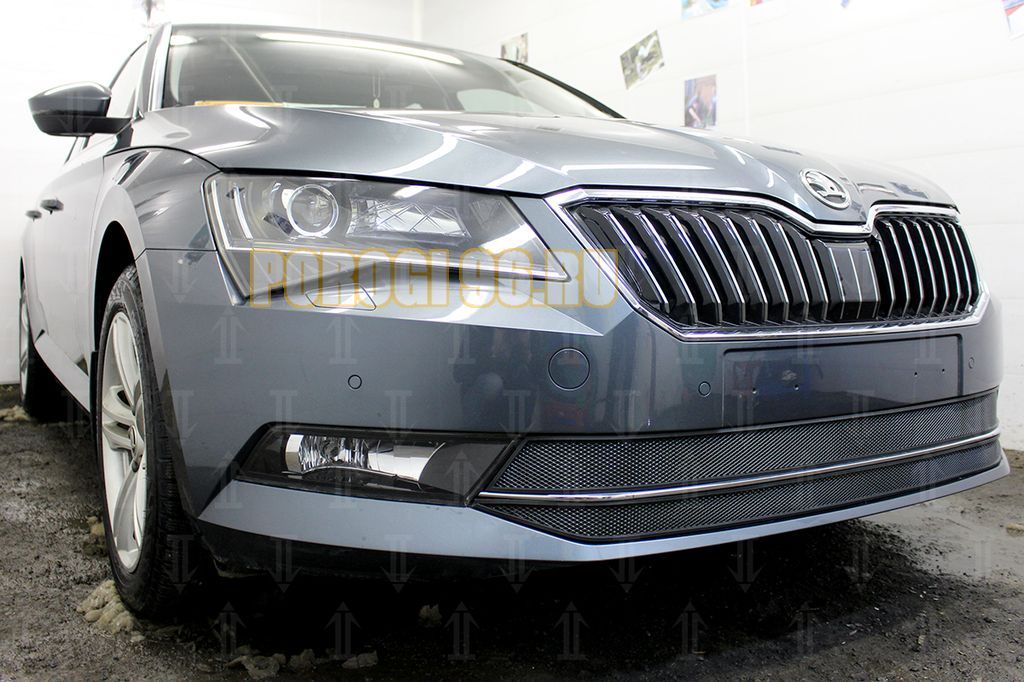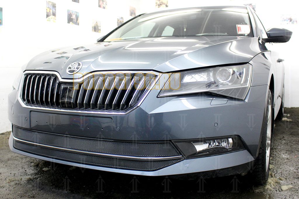 Защита радиатора Skoda Superb 2015- (2 части) black