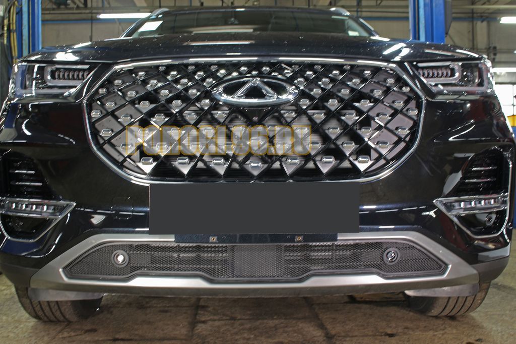 Защита радиатора Chery Tiggo 8 PRO 2021- black низ с парктроником
